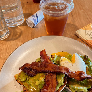 But one needs to remember to invest in themselves, and in this case--I got what I paid for. The avocado toast was garnished with a sweet vinaigrette, runny soft boiled egg, bacon and two thick slices of freshly baked in house bread.